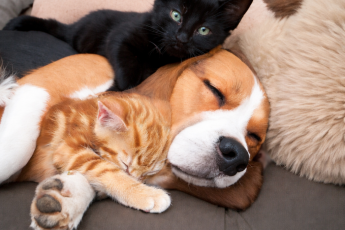 Собака разрешила кошке родить в будке, а сама спала на земле и оберегала котят