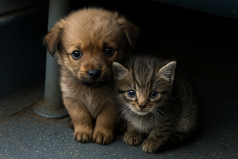Малыши очень дружили между собой. Щенок обнимал котенка, переживая, что тот замерзнет. Когда Джесси отправлялась искать еду, то малыши бежали рядом друг с другом.