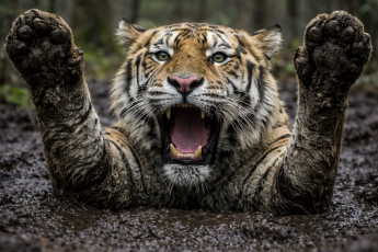 Пытаясь передвигаться на трех лапах, собака не удержала равновесие и упала в канаву с водой. Хотя углубление было небольшим и наполовину заполненным мусором, выбраться самостоятельно у животного не получалось, напротив, с каждым движением оно только дальше уходило на глубину.