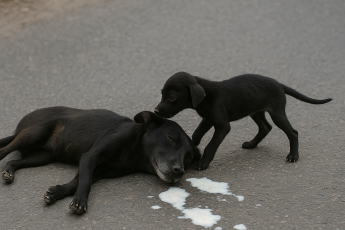 Самых крошечных котят отдали под опеку приютской кошке, котятам которой уже нашли хозяев. Кошечка была не против и приняла новых деток как родных. Теперь она кормит их своим молоком.