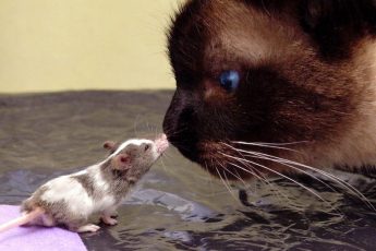 Со временем оба животных выросли, но Гоша, как и раньше, все свои угощения относил коту и кормил его так, словно тот был его птенцом.