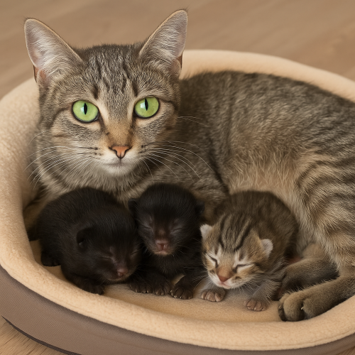 А на следующее утро Нюша с трудом проводила Настю на работу и уже не вышла на прогулку. Когда хозяйка вернулась вечером, то увидела счастливую картину: Нюша лежала на своей лежанке и кормила троих крошечных котят. Ее зеленые глаза светились нежностью и гордостью.