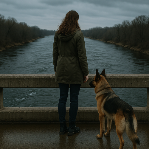 И вот теперь она стояла на мосту. Один шаг — и всё кончено. Плащ затянут на талии, волосы растрепаны от ветра, сердце стучит гулко, но мысли уже ясные: впереди пустота, и это лучше, чем бессмысленное существование. Она поставила ногу на ограждение — и вдруг за спиной раздался звонкий лай.