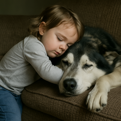 Дом снова стал тихим — но теперь в тишине жилось легко. Цезарь дремал у дивана; Яна рядом строила башню из кубиков, подпирая её его лапой. Когда башня рушилась, хвост снова подбадривающе стучал.