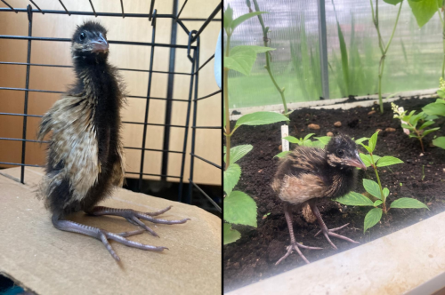 Среди черенков гортензий в теплице теперь живёт ещё один «черенок» — птица. Имя долго выбирали, хотели что-то благородное, почти аристократичное. В итоге зовут его Бедро. Прозвище прилипло само — потому что лапы у него знатные, прямо окорочка. Ходит от бедра, гордо.