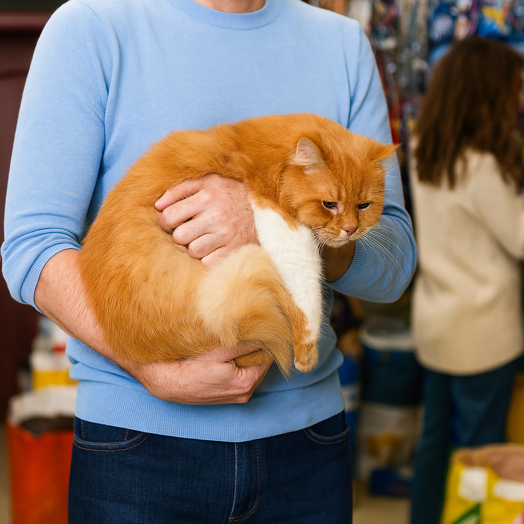 Мужчина говорил, что кот давным-давно живёт с ним, он ласковый и дружелюбный. Но вот хозяин решил приобрести попугая — а значит, нужно согласовать покупку с котом. Иначе нельзя: важно, чтобы потом пернатый не оказался в опасности, ведь кот солидный и может обидеть птицу. Поэтому мужчина и ходит по зоомагазинам — туда, где не возражают против появления кошачьих.