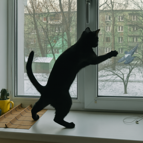 Чёрный кот спрыгнул с подоконника и впервые в жизни рухнул на пол. Он словно не увидел, куда приземляется. И, вероятно, он бы так и остался лежать…