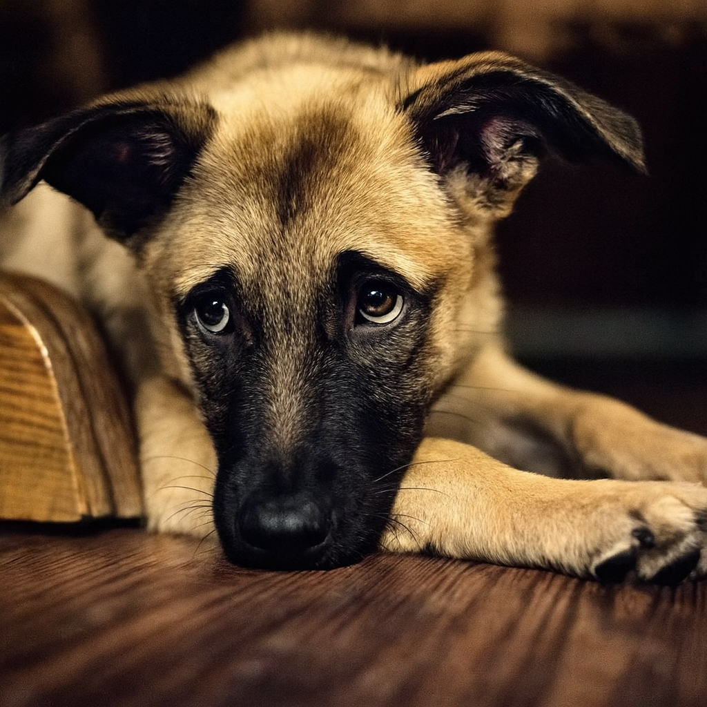 Тот взгляд невозможно стереть из памяти — тёмные глаза собаки светились страхом, печалью и одновременно мольбой. Под глазами — влажные следы, будто она тихонько плакала.