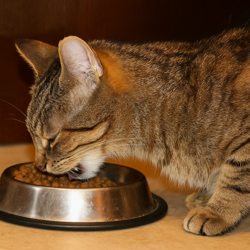Из миски Вениамина, причём не просто ела, а буквально заглатывала пищу, давясь рыбой пополам с гречкой, худая потрёпанная кошка окраса «табби»: серовато-полосатая, с покусными ушами и затравленным видом.