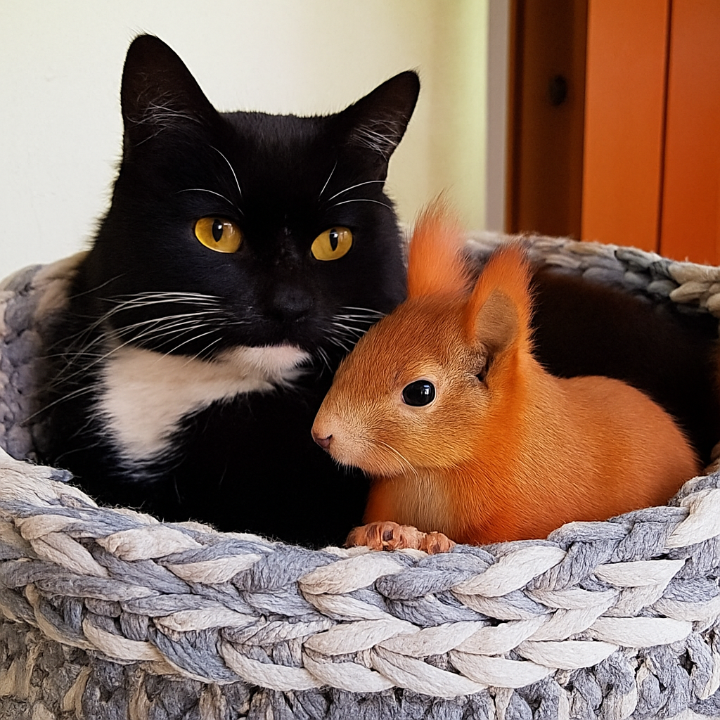 Мусечка не выдержала и полезла за своей рыжей подружкой на дерево. Хотя кошка крайне редко забиралась наверх, в этот раз повторила за белкой. И когда поднялась к дуплу — застыла от изумления. Там было четыре малюсеньких беличьих мордочки с теми же бусинчатыми глазами.