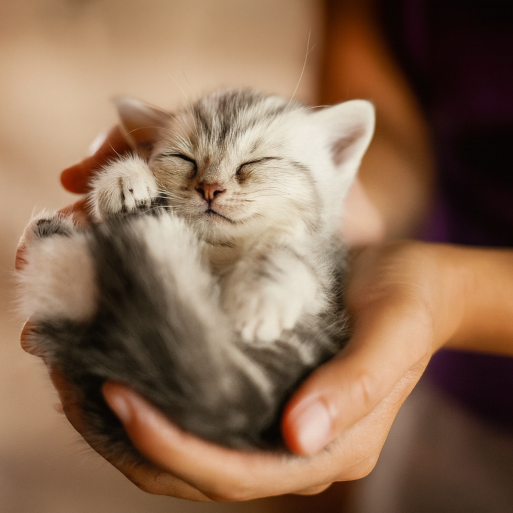 Мужчина театрально отвёл руку в сторону — и под ней оказался малюсенький серый котёнок. С прищуренными глазками, от солнца он тёрся мордочкой о его ладонь и громко мурчал.