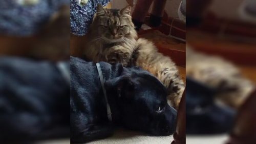 Она ласково приласкала незваного гостя и попыталась сделать то же с Фунтиком, но кот демонстративно увернулся, подошёл к щенку и исподлобья уставился на него с явной неприязнью.