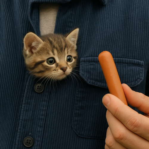 Маленькая мордашка вцепилась зубками в сосиску, ловко откусила кусочек и мгновенно спряталась обратно. Затем снова появилась, и вдруг…