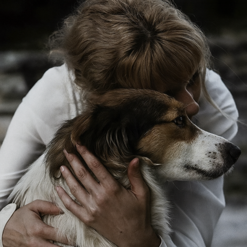 Собака замерла на секунду. Затем подошла ближе и прижалась к ней чуть плотнее, будто признала: вот теперь у него есть человек.