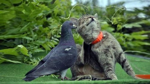 Однако новые жильцы начали курлыкать, устраиваясь в голубятне. Голубиный кот всё больше раздражался на их звуки. В конце концов он поднялся и пошёл посмотреть, кто там так шумит. Итог был ожидаемым…