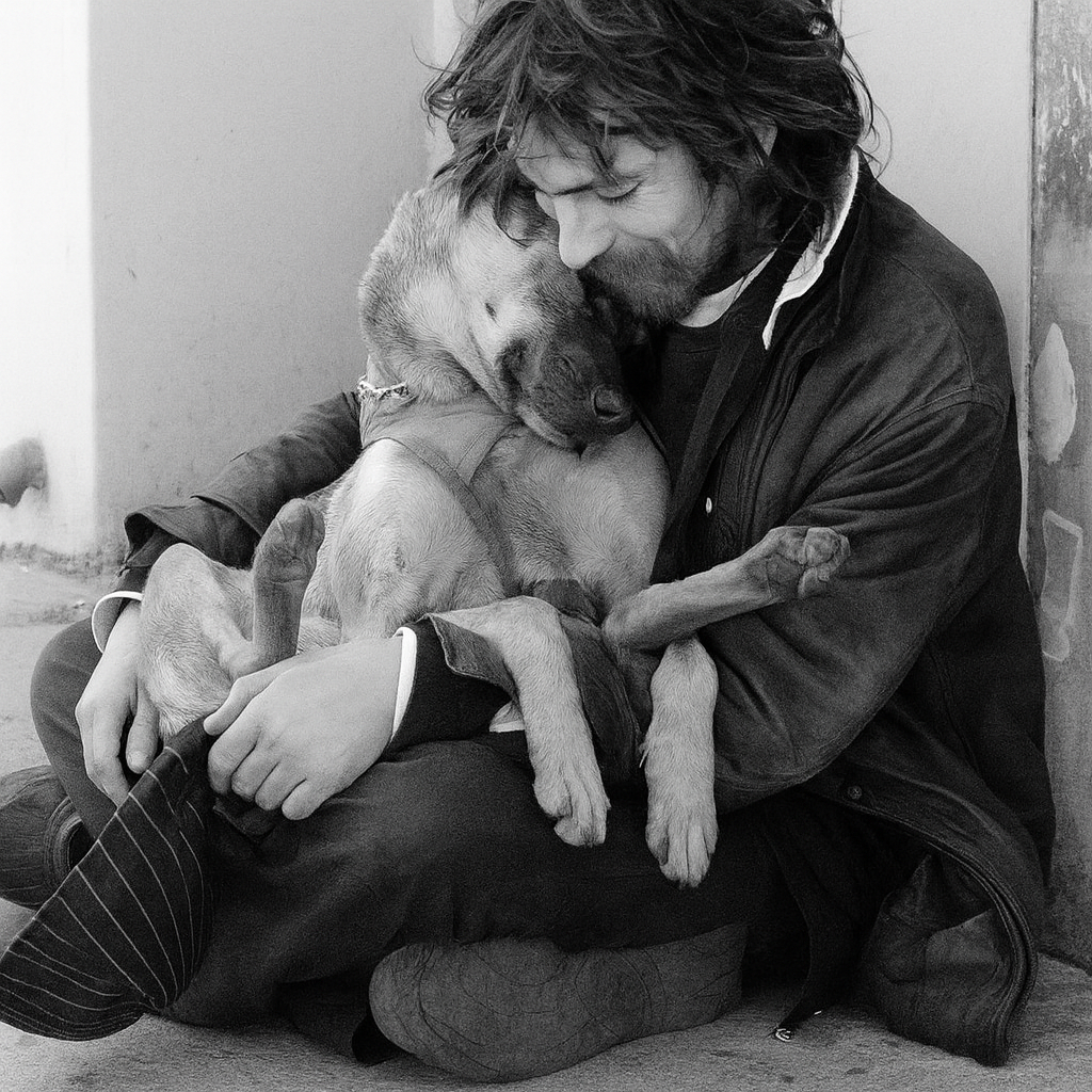 Кошки и собаки вокруг словно ожили: они завиляли хвостами, начали тихо поскуливать и радостно суетиться. Мужчина вместе с нищим стал угощать животных, осторожно поглаживая их по спинам. Мир вокруг будто остановился — исчезли тревоги, заботы, тяжёлые мысли. В этом странном покое прошло несколько часов, которые пролетели незаметно.
