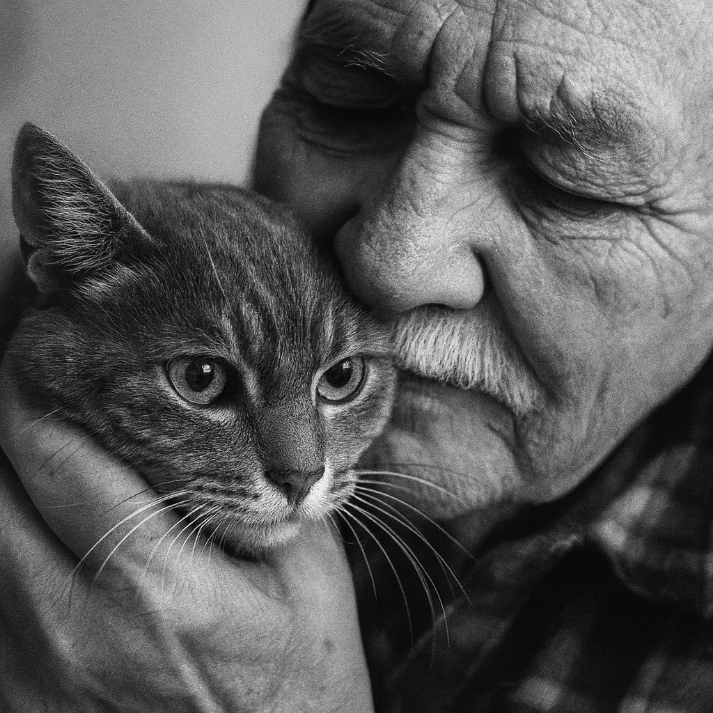 Она опустилась рядом, и коты немного подвинулись. Взяла его руки — уже холодеющие — стараясь согреть их своим теплом. Коты перебрались и к ней. Один осторожно слизнул слёзы с её щеки.