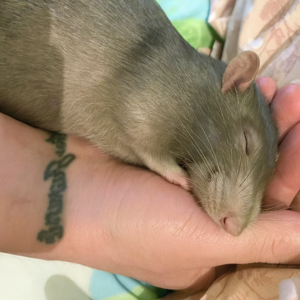 Вернувшись в особняк своего детства, мужчина взял отпуск. Слишком много воспоминаний поднималось вместе с запахом старого дерева и скрипом половиц. В этой тревожной тишине маленький серый комочек у порога показался ему почти родственным существом. Крысёныш деловито умывался, потом замер и уставился на человека блестящими чёрными бусинками. Через миг встал на задние лапки и вытянул к нему передние, словно просил взять его на руки.