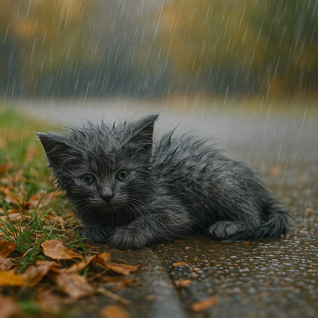 Большая чёрная машина, мокрая от дождя, не свернула. Водитель не захотел заезжать в глубокую лужу… и в тот миг котёнок остался сиротой. Он не знал этого, лишь чувствовал, что за стеной подвала будто кто-то шепчет. Может, этот кто-то знает, где мама? Может, подскажет, когда она вернётся?