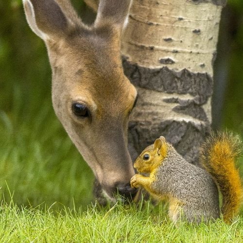 И вижу, как на поляну осторожно выходят косули, у их ног смешно подпрыгивают зайцы, а с ветвей спускаются белки и бегут к орехам, рассыпанным на пеньке. И я улыбаюсь.