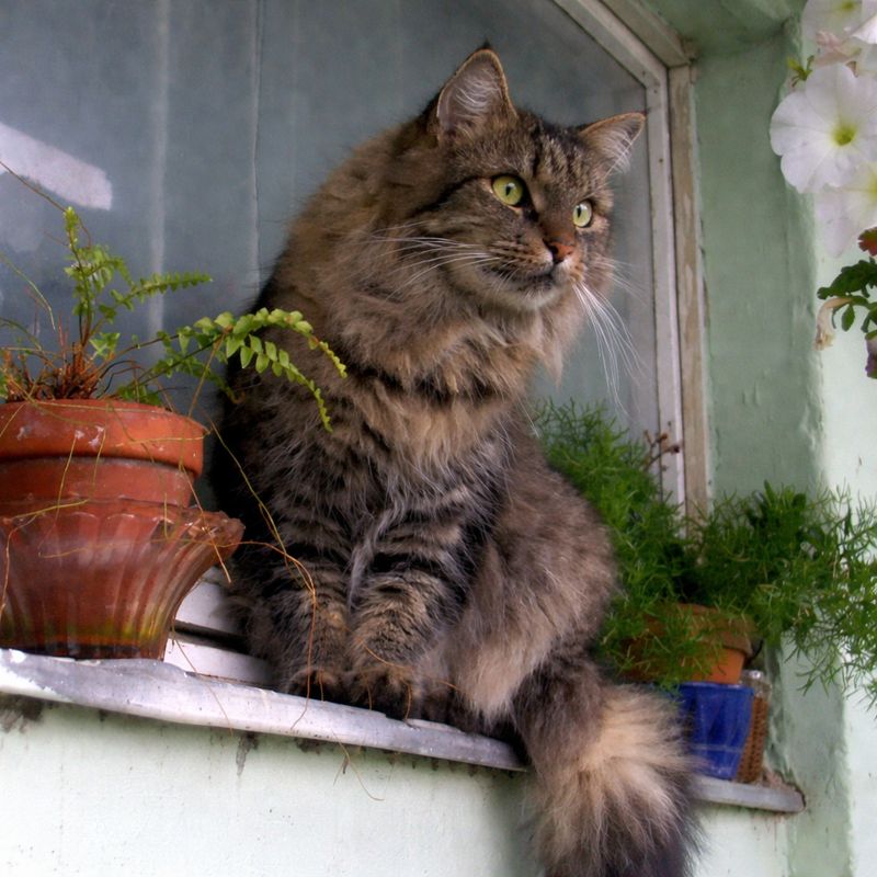 Летом кухонное окно у неё почти всегда было распахнуто. Через него она здоровалась с соседями, проходившими по двору. Пожалуй, эту пожилую женщину знал весь дом, как и её кота Ваську — серого, пушистого, важного. Он либо сидел рядом с хозяйкой на подоконнике, либо грелся на солнце прямо среди цветов.
