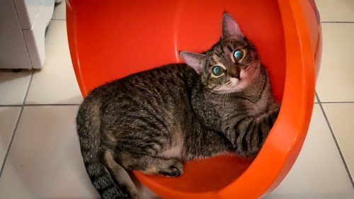 Вообще Лана у нас действительно умница. С первого дня — только лоток. Игрушки приносит, как собака, когда хочет поиграть. Ласковая: приходит, ложится рядом и мурлычет — мол, гладь.