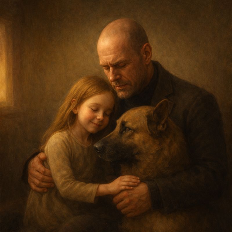 Арсен посмотрел на ребёнка, на её пальцы, зарывшиеся в густую шерсть пса, на спокойствие на её лице — и впервые за много лет улыбнулся по-настоящему.