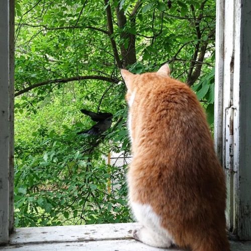 Через два месяца на подоконнике обычно сидели уже двое — ворона и крупный, упитанный, с блестящей шерстью рыжий кот по имени Рыжик.