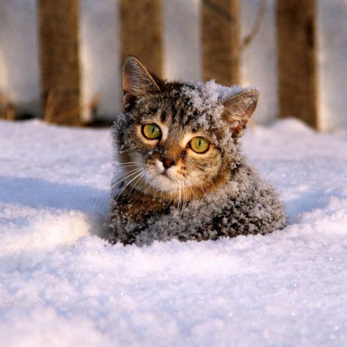 Неподалёку от крыльца одного из подъездов, почти незаметный, сидел крошечный котёнок. Снег больно хлестал по его мордочке, постепенно укрывая маленькое тельце белым покрывалом. Он не уходил — лишь жалобно пищал, стараясь подать голос. Но ветер был сильнее, и его тоненькие звуки тонули в общем гуле.