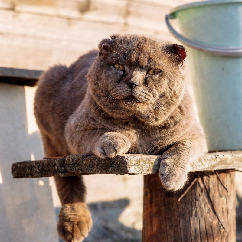 Павел пригляделся — и понял: это кот. Огромный, страшноватый, словно войну прошёл. Морда в шрамах, уши рваные, шерсть подранная, опалённая, непонятного серо-буро-коричневого цвета — ни то дым, ни то грязь. Он сидел, нахохлившись, и смотрел на Павла так, будто перед ним стоял не человек, а заклятый враг.