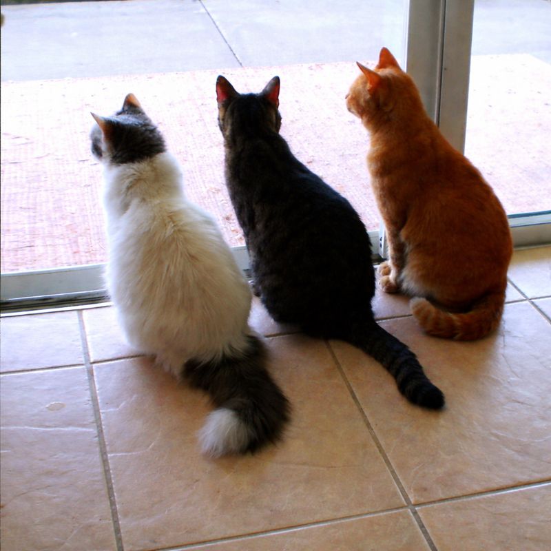 Через неделю он заметил, что все три кошки уселись на стол рядом с компьютером.