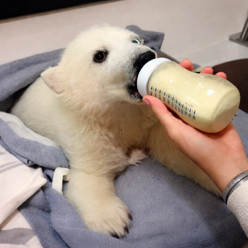 Маленького белого медвежонка обнаружили полярники во время одной из экспедиций. Его мать была слишком юной и истощённой, чтобы выкормить детёныша, и в какой-то момент просто перестала справляться. Ослабевший малыш остался без защиты и еды.