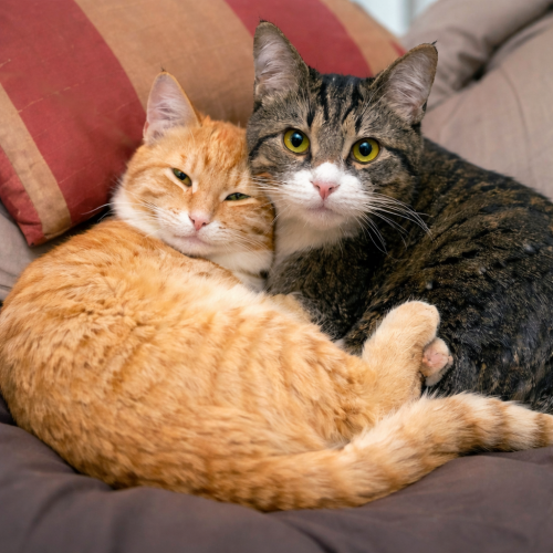 Маня спокойно играла с хвостом, а Кнопа лениво вылизывала лапу.