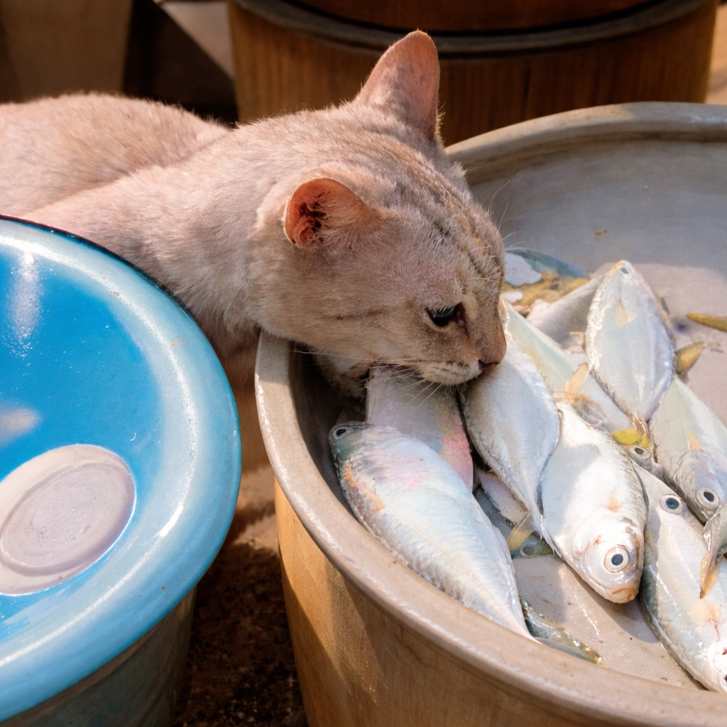 Именно здесь «трудился» он — крупный, потрёпанный жизнью серый кот. Ловко выжидая момент, он умудрялся стащить рыбёшку, а иногда и две. Если быть откровенными, ему особенно никто не препятствовал. Пропажа одной-двух рыбин никого не расстраивала, скорее даже забавляла.