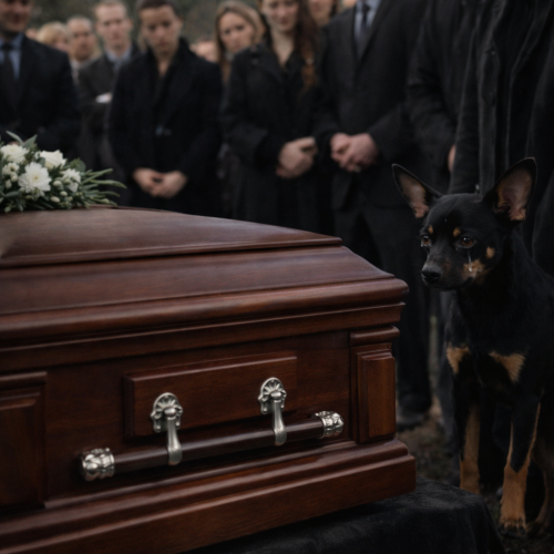 — О, господи, — обратилась она к дочерям и зятьям. — Я не могу найти собаку. Она всё время пыталась запрыгнуть в гроб. Не может же быть?…