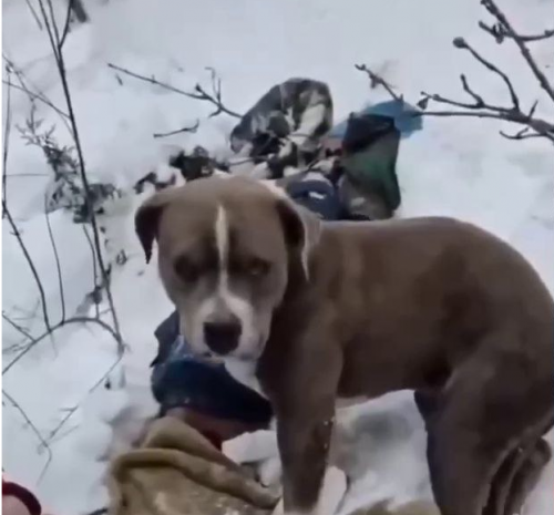 Рядом с телами погибших туристов сидел пёс. Измождённый, обледеневший, почти неподвижный — но живой. Услышав шум винтов, он поднял голову, однако с места не сдвинулся.