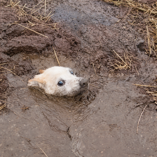 Максим раздвинул ветки и увидел маленького щенка, который беспомощно барахтался в прибрежной жиже. Малыш из последних сил пытался выбраться на сушу, но его лапки скользили по мокрой траве, и он снова и снова скатывался в грязную массу.