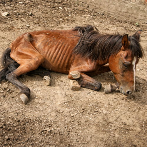 Это сильно пугало животное. Лошадь привычно пыталась подогнуть ноги, словно собираясь подняться, но опереться на них не получалось. Казалось, будто конечности больше ей не принадлежат.