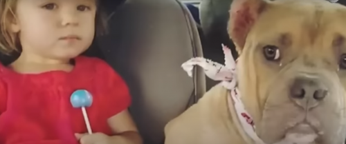 Маленькая Миа заметила собаку, которая явно нуждалась в заботе.