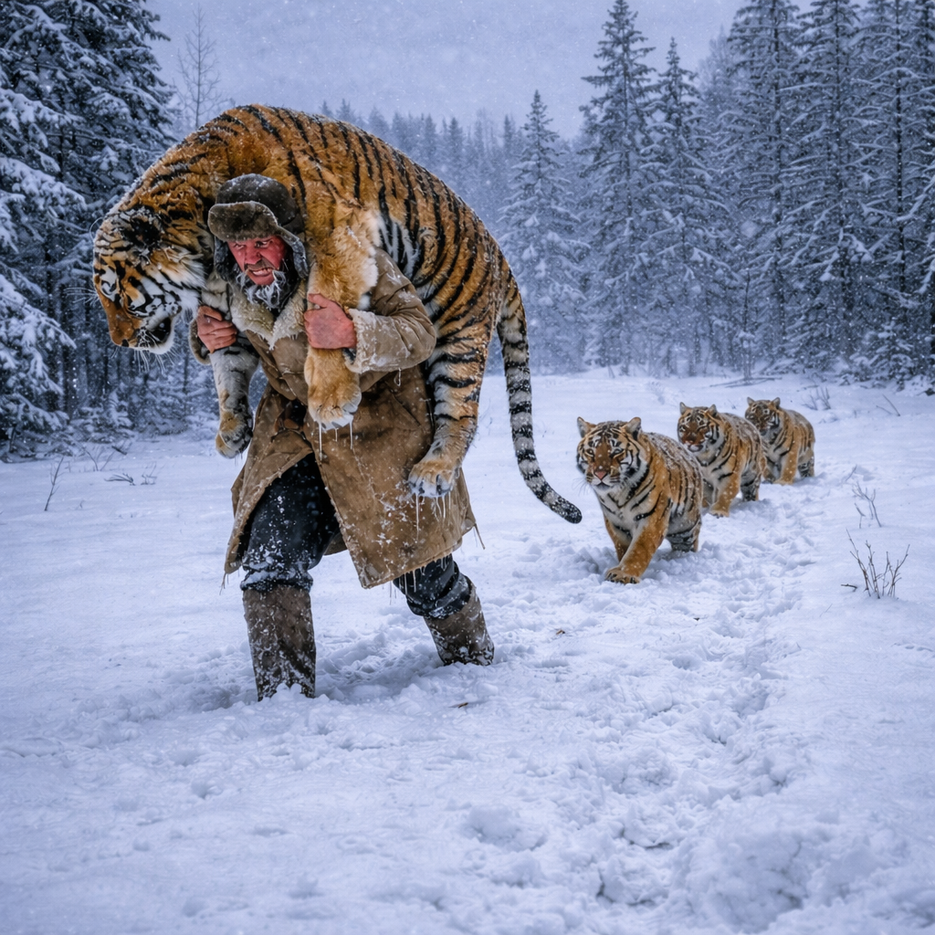 Тайга не прощает ошибок. Здесь каждая оплошность может стоить жизни. Но иногда она всё же даёт шанс тем, у кого хватает мужества и горячего сердца. Иван Соколов, опытный инспектор, прекрасно знал: при морозе в минус пятьдесят любое неверное движение может обернуться гибелью. Однако в тот момент, когда он увидел амурскую тигрицу, зажатую в капкане, а рядом — двух дрожащих тигрят, он понял: привычные правила выживания здесь уже не работают.