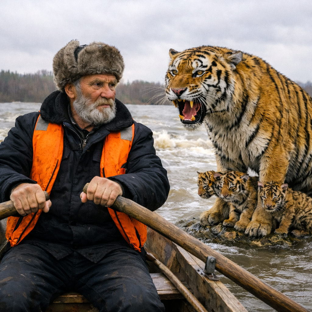 Захар скомандовал Павлу оттолкнуть лодку обратно. Он дал тигрице шанс уйти с достоинством. «Иди, Хозяйка, там лес», — тихо прошептал старик. Зверь мгновенно прыгнул на мелководье, забрав тигрят, и растворился в чаще.
