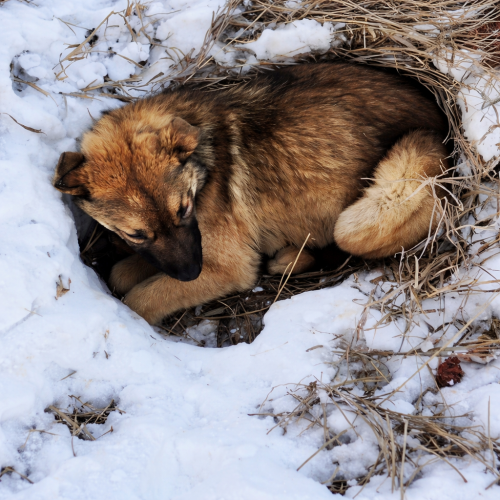 Замерзающий пес лежал на пустынной дороге и уже не надеялся на спасение