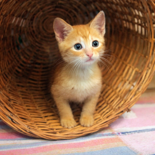Тем временем котёнок в корзинке начал нервничать. Видимо, терпение малыша закончилось: он стал беспокойно барахтаться, пытаясь выбраться наружу.