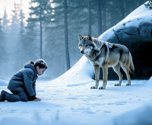 Два дня они шли вместе через глубокие сугробы — странная пара, связанная невидимой нитью выживания. Когда вдали показался дым спасательного лагеря, волк остановился. Его миссия была выполнена. Он посмотрел на спасенного, затем растворился в чащобе, оставив мальчика людям.