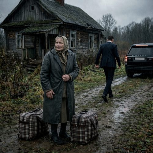 За рулём сидел Максим — тридцатидвухлетний мужчина в безупречном костюме. Обычно уверенный и собранный, сейчас он выглядел раздражённым и напряжённым. Рядом, на пассажирском сиденье, сжавшись в комок, будто испуганная птица, сидела Нина Петровна. Её руки, покрытые морщинами и вздутыми венами от тяжёлой жизни, нервно теребили край старого плаща.