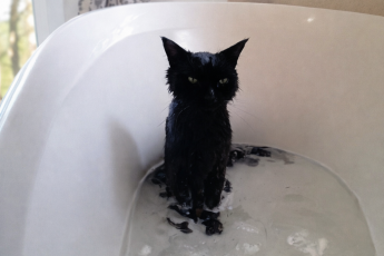 Вынырнув за баржей и подняв переноску над водой, он понял, что пакет порвался. Вода залила котов. Закричав от отчаяния, он изо всех сил поплыл к берегу.