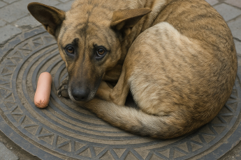 Заметил, что мой четырехлапый друг отворачивает от меня морду в сторону, а в пасти у него точно что-то есть. Я забрал у него, а это оказался котенок! Еще совсем крошечный, совсем худой, грязный аж страшно смотреть на него! Я посмотрел своему псу в глаза, сунул котенка в карман, и мы отправились домой.