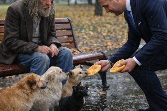 Бедняга весь дрожал от холода, уставившись на дверь. После минутного ступора, он попробовал поддеть ее лапой, после второй. Ничего не получилось. Тогда он начал по ней постукивать. Вышел какой-то мужчина и топнул ногой. Песик отбежал в сторону, поджав хвостик, все так же завороженно смотря на дверь, откуда тянуло теплом. Возможно он ждет ту пару, за которой следовал и скоро они выйдут к нему? Непонятно.