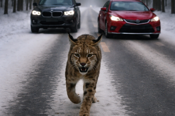 Водитель грузовика увидел вoлка на обочине зимней дороги и решил покормить