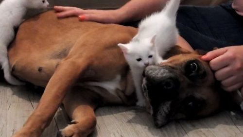 Время шло, и Джина нашла любящих хозяев, т.к. они с радостью играли с ней, а также давали много тепла и любви. Однажды Джина отправилась на прогулку со своей новой хозяйкой. Во время прогулки она нашла что-то возле мусорных баков. Джина начала тянуть хозяйку в то место, где они увидели кошку и её котят.